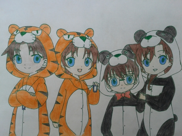 Cewa ich wollte gerade schreiben das mir das Bild bekannt vorkommt XD<br /> Vermouth_1 Ich hole es jetzt für dich anch: Ach ist das süß! und KNUFFIG<br /> Ich finds lustig das du es mit einem grünen Stift gemalt hast., habe heute festgestellt das ich Tiger mag,aber das schwarz-weiß von Conan und Ran gefällt mir auch und diese riesigen blauen Augen.<br /> Bei Kazuha und Heiji bin ich mir nicht sicher, waren die nicht grün?<br /> Allerdings würde das auch komisch aussehen mit grünem Stift die Linien gemalt und dann noch grün ausgemalt.<br /> Ich würde auch gerne mal wieder was malen...Aber ich vergess das immerXD<br /> Puh endlich fertig gelabert..