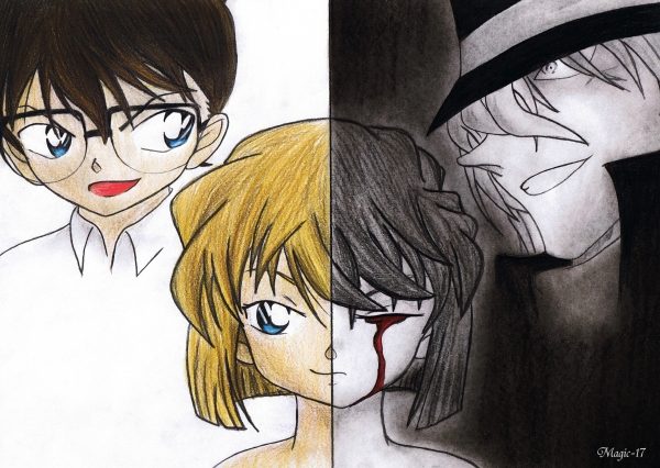 Ich find die Bildidee prima, der schwarz-weiße Part gefällt mir auch gut. Allerings bin ich mit der Farbgebung nicht ganz glücklich, aber vllt liegt das auch n bissel am Scan. Conan sieht etwas blass aus ^-^ hoffen wir darauf, dass die Muse das nächste Mal wieder mit aller Macht zuschlägt :D