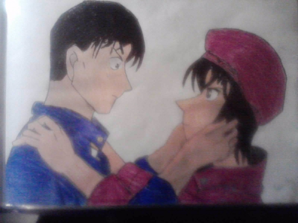(0)Küssen,küssen,küssen!! *anfeuer*<br /> Die Zeichnung an sich find ich einfach nur klasse..leider ist die Quali vom Foto(?) nicht ganz so gut....aber trotzdem ein gelungenes Fanart :)