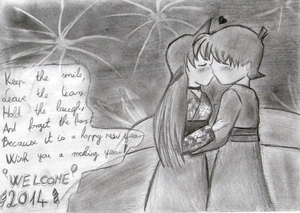 Super gemacht mein Engelchen <3. Und wow was für ein super Spruch!! Dankeee dafür .Das Herzchen über ihren köpfen ^^. <br /> Hach so eine Silvesternacht ist schön *-*.