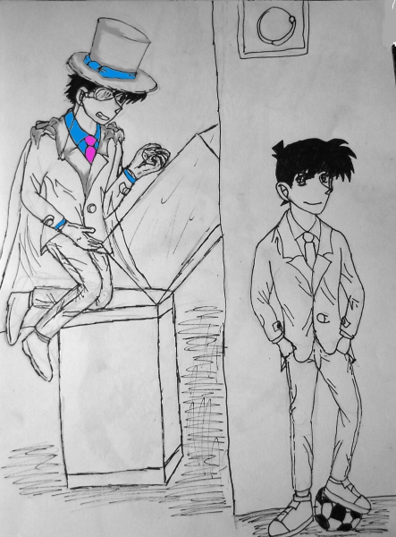 Sieht aus, als ob Shinichi gleich Kaito Kid einen Strich durch die Rechnung zieht^^ <br /> Die Beine sind bisschen lustig, aber ansonsten ist es gut gelungen!! :)