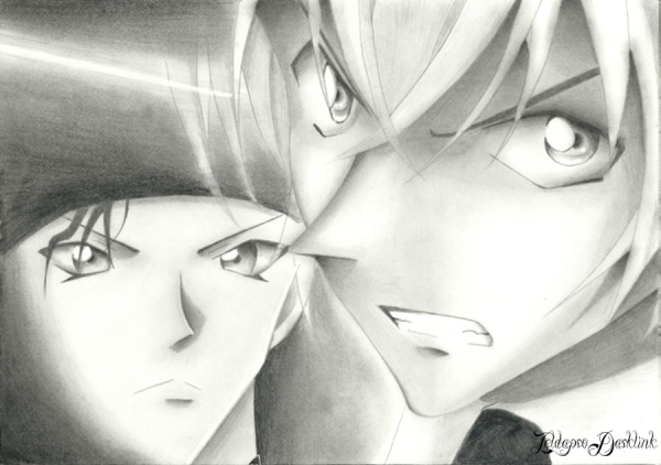 Sehr schönes Bild! Man kann beide Charas sofort erkennen, obwohl Amuros Gesicht zum Großteil nur zu sehen ist. Du hast seine Züge, so wie seine schönen Haare, sehr gut erfasst. XD vor Llem seine Augen und sein Mund gefallen mir sehr gut. Die Details sind sehr schön gewroden und brnigen seine Emotionen sehr gut zur Geltung. Und obwohl ea eine reine Bleistiftzeichnung its, sieht es so wunderbar sauber aus! Bei mir aind die Bleistiftbilder hinterher immer so verschmirt, dass ich schon vor Ewigkeiten auf Kulli und Fineliner gewechaelt bin. Also hier auch nochmal ein großes Lob an deine saubere Arbeit. X3