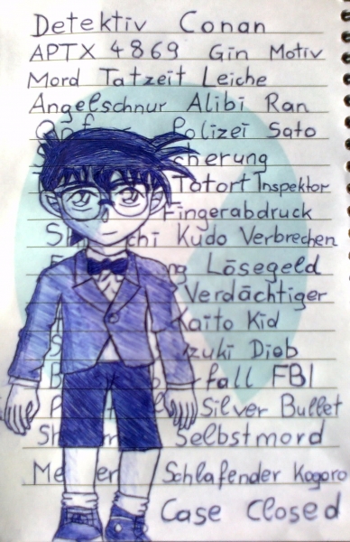 ich weiß, conan hat da fette Beine, da ich so meine probleme mit händen und beinen hab aber ich arbeite daran.<br /> und das kuli sich nich radieren lässt is ziemlich blöd, deshalb zeichne ich jetzt immer die konturen mit bleistift. (bin erst nach dem bild draufgekommen. Auf den drick mit den bleistift mein ich)